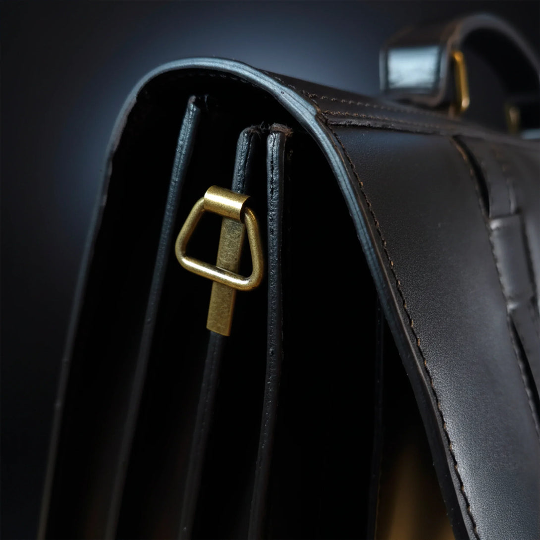 Designet i en klassisk vintage-inspireret stil, er denne rummelige dokumentmappe fremstillet af højkvalitets ægte læder i en dyb, tidløs sort farve. Den tilbyder enestående funktionalitet og sikkerhed, hvilket gør den til den ideelle følgesvend til forretning, kontor eller universitet.